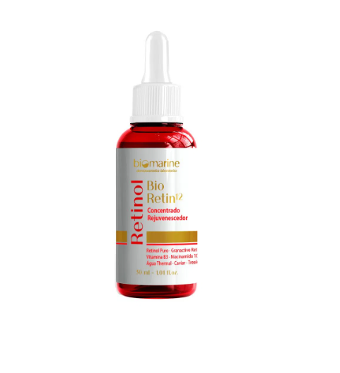 Biomarine Bio Retin12 é um sérum de retinol puro concentrado que promove 12 horas de tratamento intensivo para a pele.
